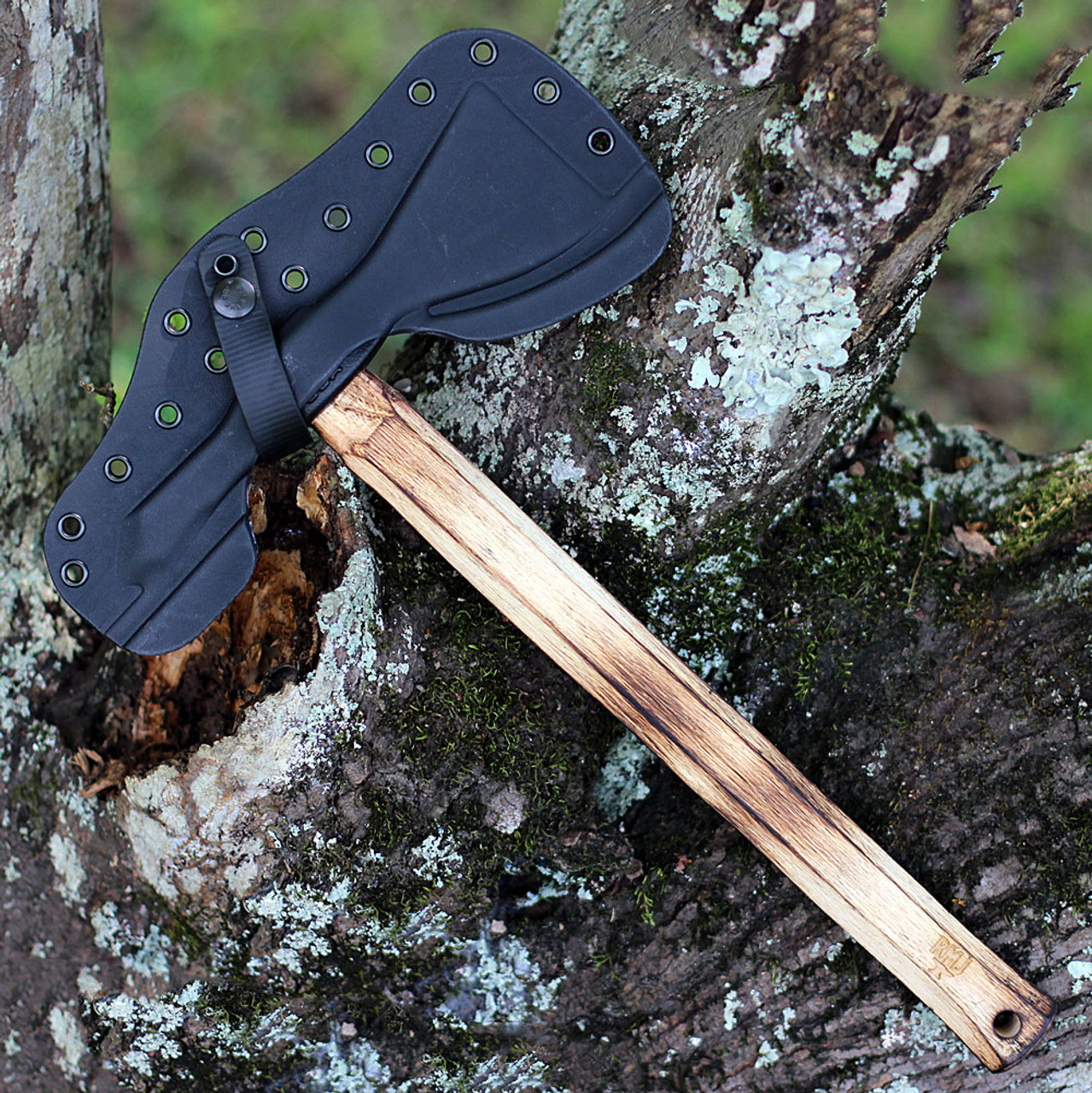 The American Tomahawk Model 1 head is made from drop-forged, 1060 carbon steel (HRC-56) and is powder-coated black for corrosion resistance.