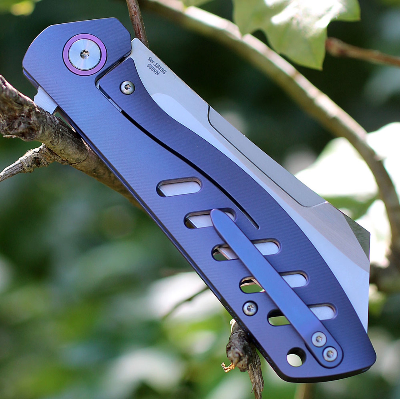 Artisan Tomahawk ATZ1815GBUS, 3.75″ S35VN Plain Blade, Blue Titanium Handle