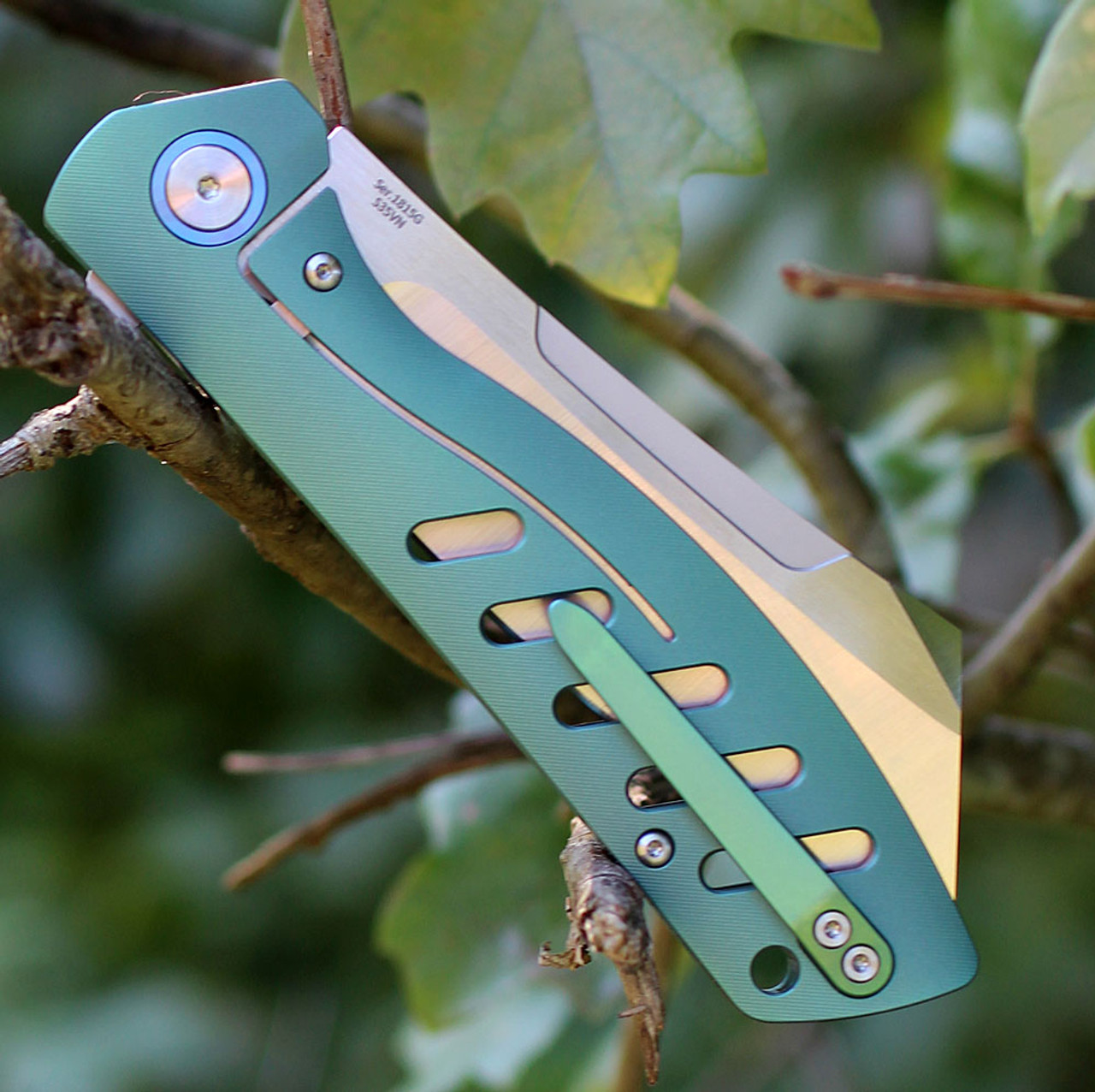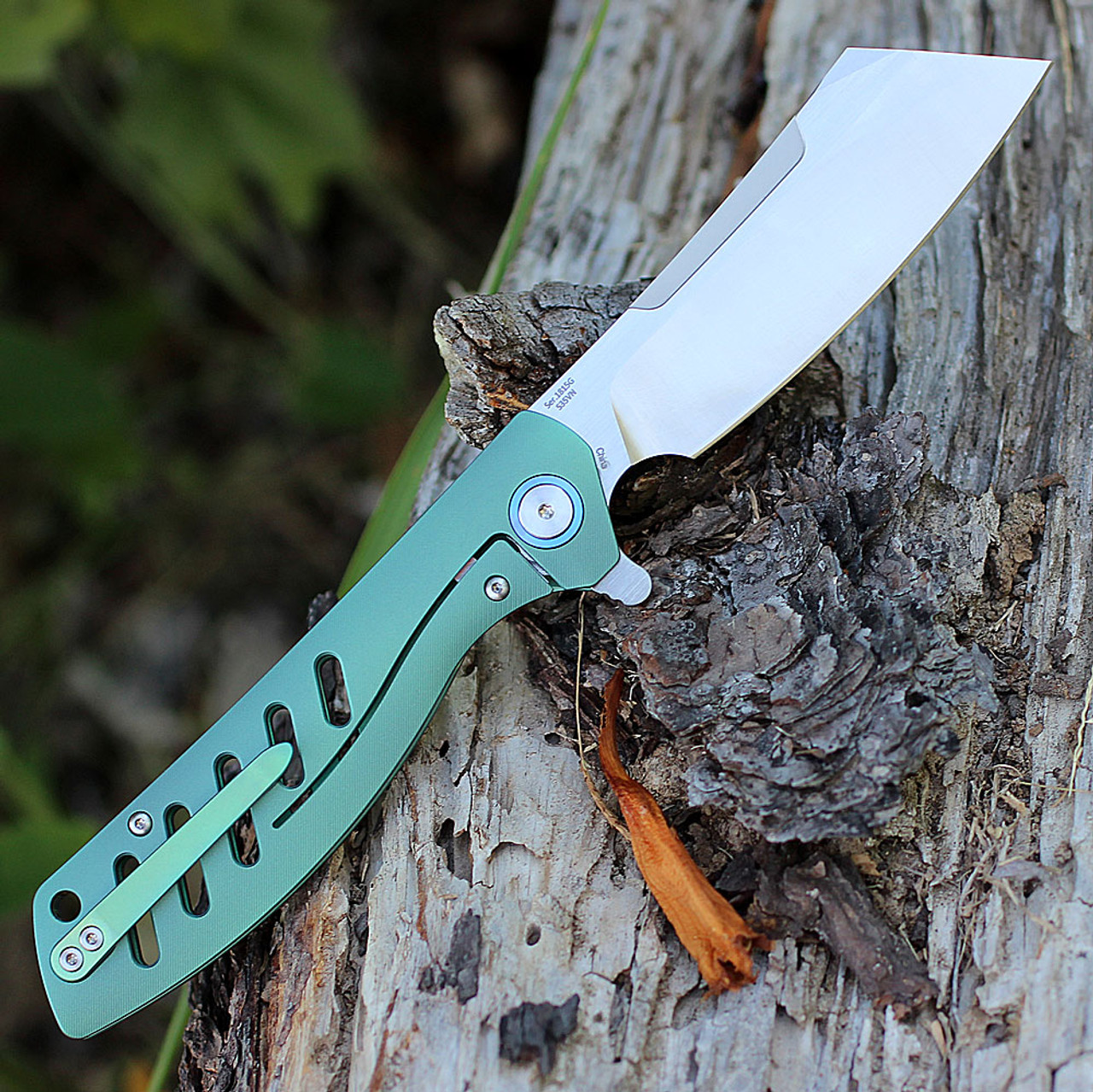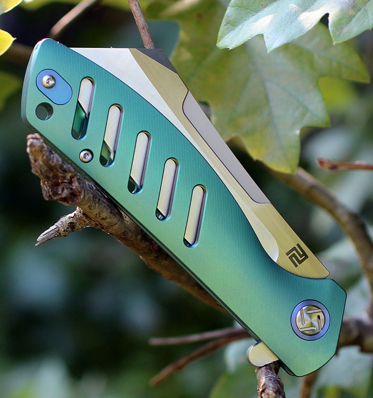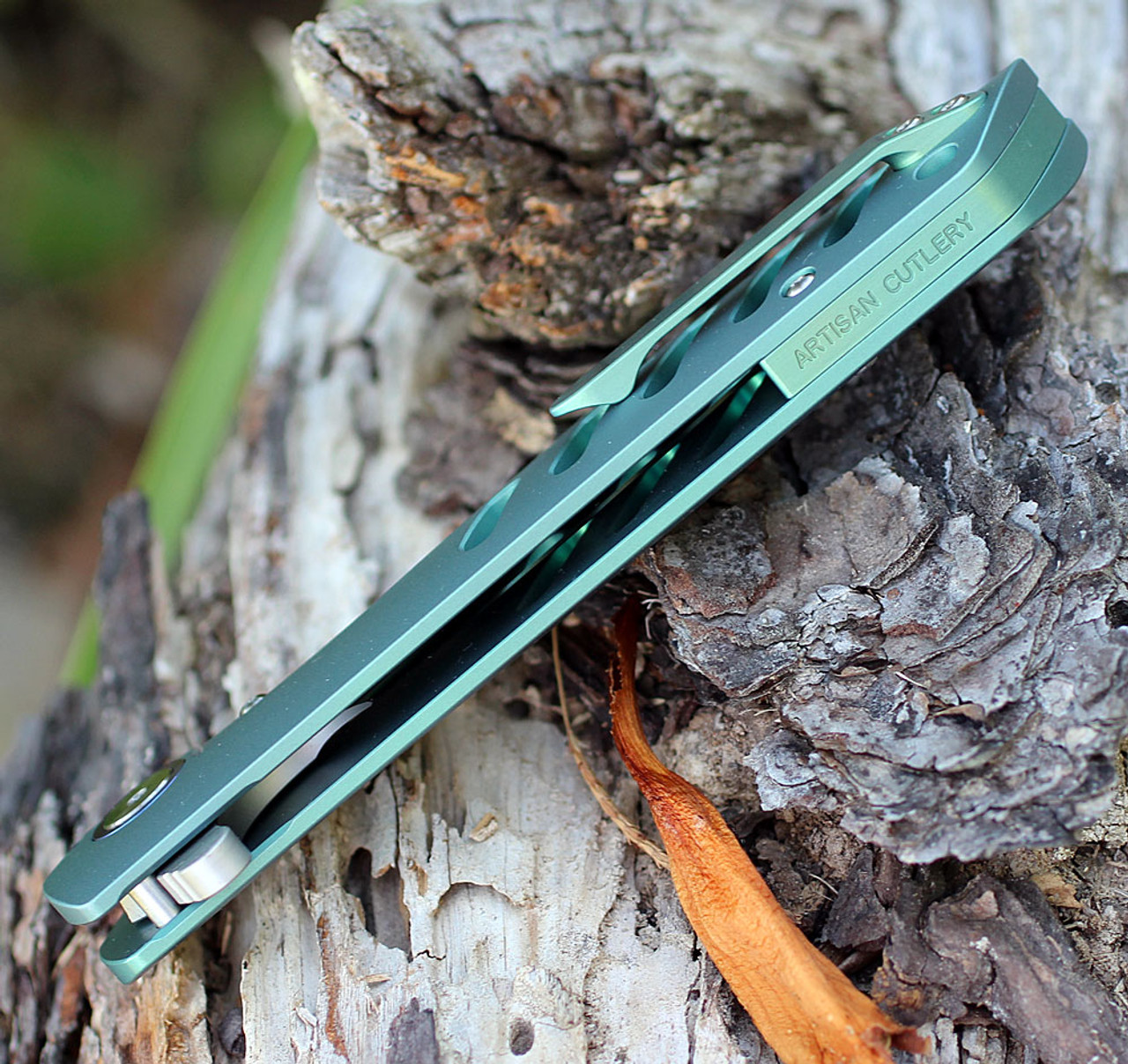 Artisan Tomahawk ATZ1815GGNS, 3.75″ S35VN Plain Blade, Green Titanium Handle