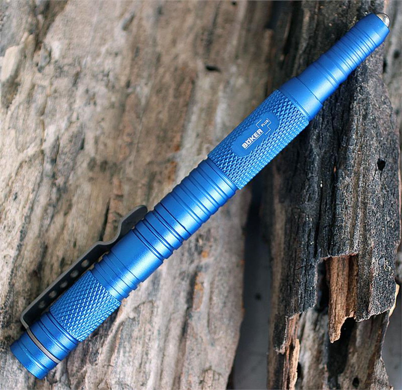 An innovative new development joins the Boker Plus line. Made from lightweight but sturdy aluminum, this tactical pen features a blue anodized body, with a checkered body and cap to provide a secure grip. The Boker Plus Tactical Pen also has a hard, rounded stainless steel insert on the shaft end, which allows it to be used as a Kubotan. The cap has a precision screw and is secured by an internal o-ring. To write, the optional cap can be easily slipped back to the stylus. Compatible with Fisher Space Pen refills.