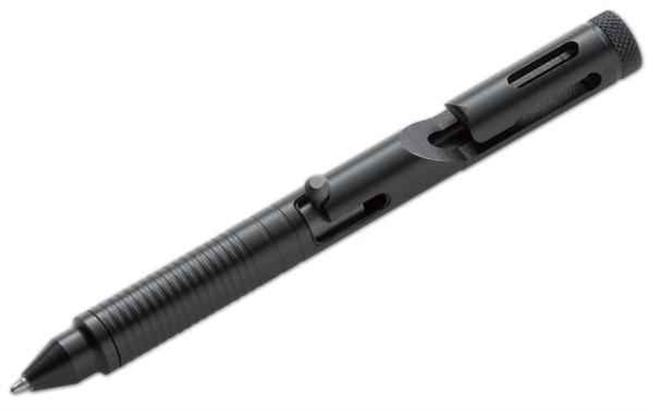 This ingenious design by Rainer Wenning and knifemaker Thomas Braunagel will be a must for those wanting a tactical pen with a twist. The “bolt action” mechanism and “click” open and close will make it difficult to put this piece down. The flat pen head provides a secure thumb rest, making it an effective self defense tool as well. The Clip Integrated Design (CID) offers the advantage of easy placement in the pocket. The sturdy clip has minimal give to provide a comfortable draw resistance in normal tactical or denim pants pockets. The body of this new tactical pen, CID .45 CAL is hardcoat anodized CNC milled aluminum, providing style and optimum ergonomics. Black finish. Not a firearm.