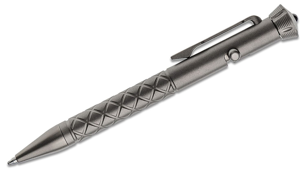 The titanium body has a tasteful design with a lattice milling on the grip area. A ball end doubles as a glass breaker and a machined titanium pocket clip and screw make sure this pen has plenty of style, even when clipped in your pocket.