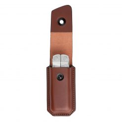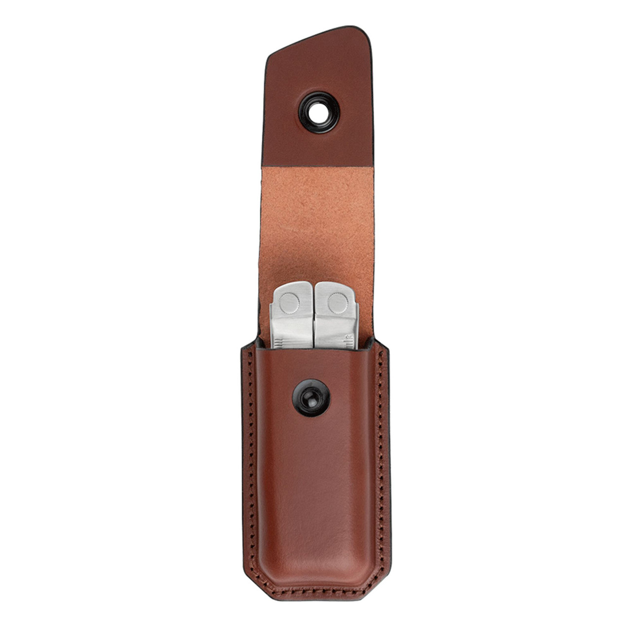 The Ainsworth leather sheath is built from vegetable tanned top grain drum-dyed cowhide. This gives you a premium leather that ages with character over time. The custom snap keeps your tool secure for years of use. This sheath is premium protection for your Leatherman and backed by Leatherman’s two-year warranty.