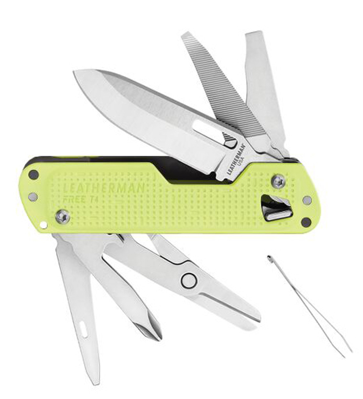 Leatherman FREE T4 Multi-Purpose Tool 832881, 12 Tools, Lunar Stainless Steel and GFN Handles