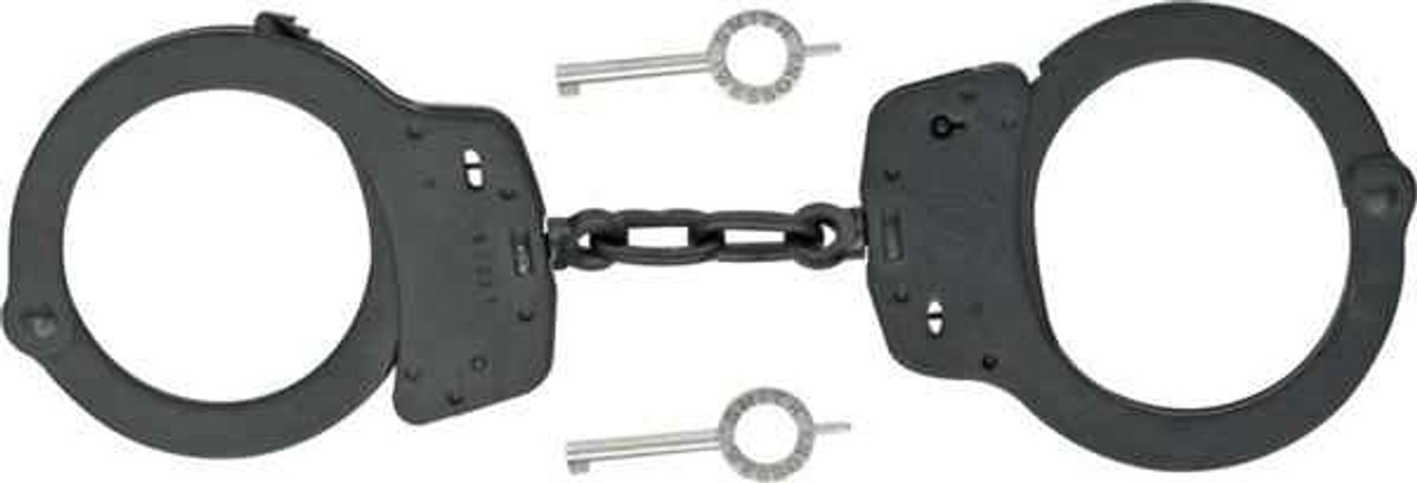 S&W Handcuffs. Black Solid nickel construction. Features double lock. Comes with two keys. Made in USA.