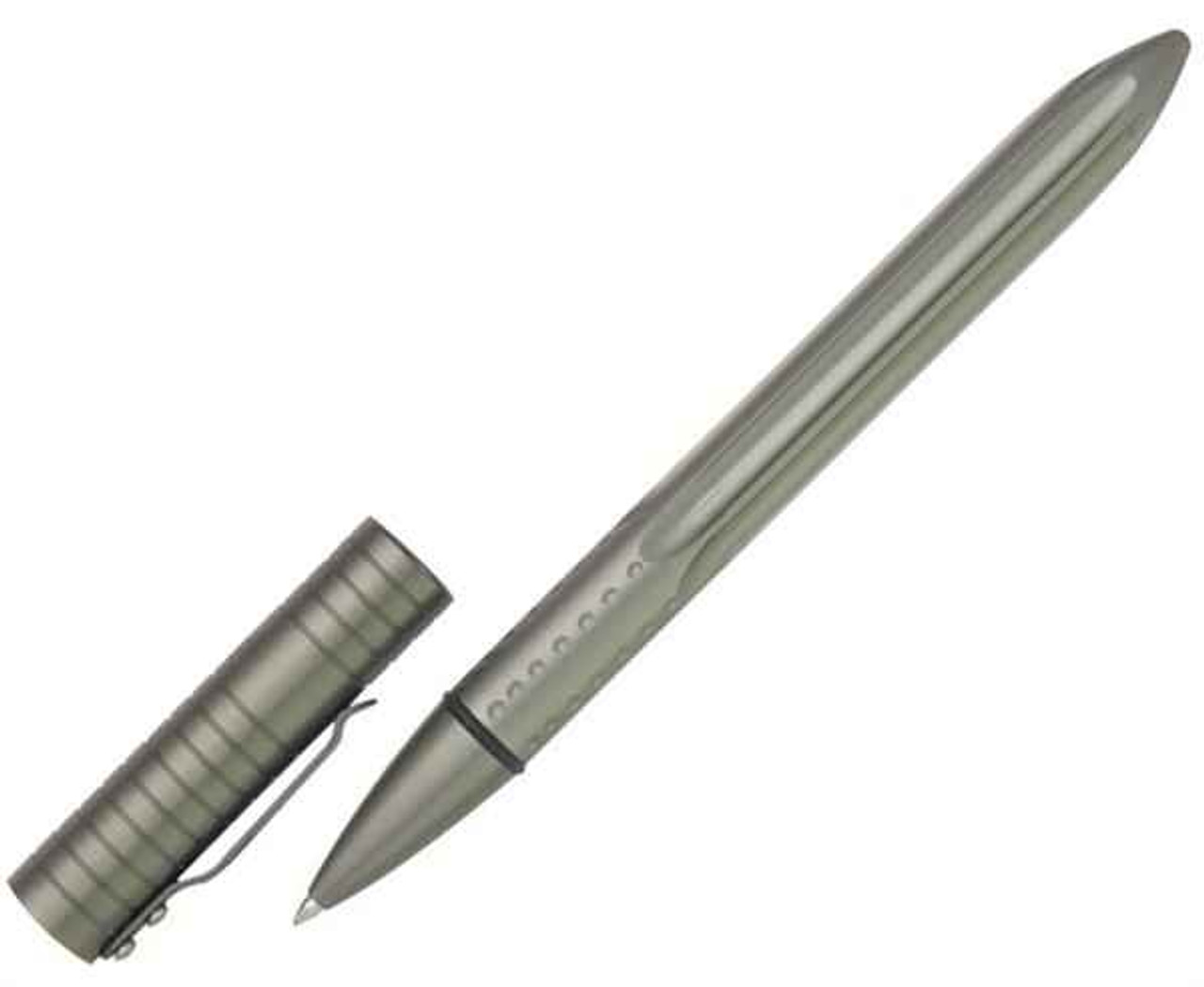 Timberline Lightfoot Pen. Combat Pen. 6″ overall. Charcoal hard anodized 7075-T6 aircraft aluminum with a fluted barrel and ported muzzle. Black pressurized ink. Gift boxed.