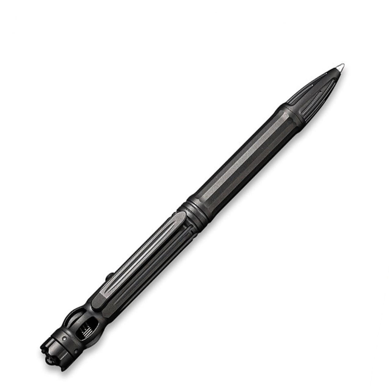 WE Knife Co. Baculus Pen TP-07B, Black Titanium Body, Fidget Spinner and Glass Breaker Tip – Black Ink